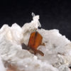 Beautiful Brookite on Quartz from Pakistan; this notable specimen feature a single razor-sharp, lustrous brookite crystal sitting in a cavity composed by other brookite blades intergrowth with transparent to translucent Quartz crystals; acrylic base included.