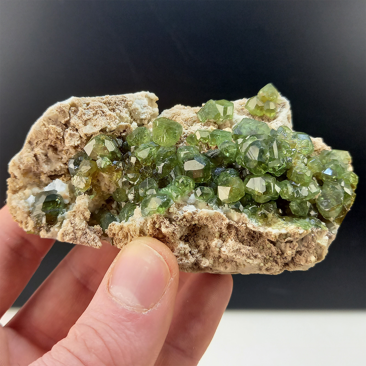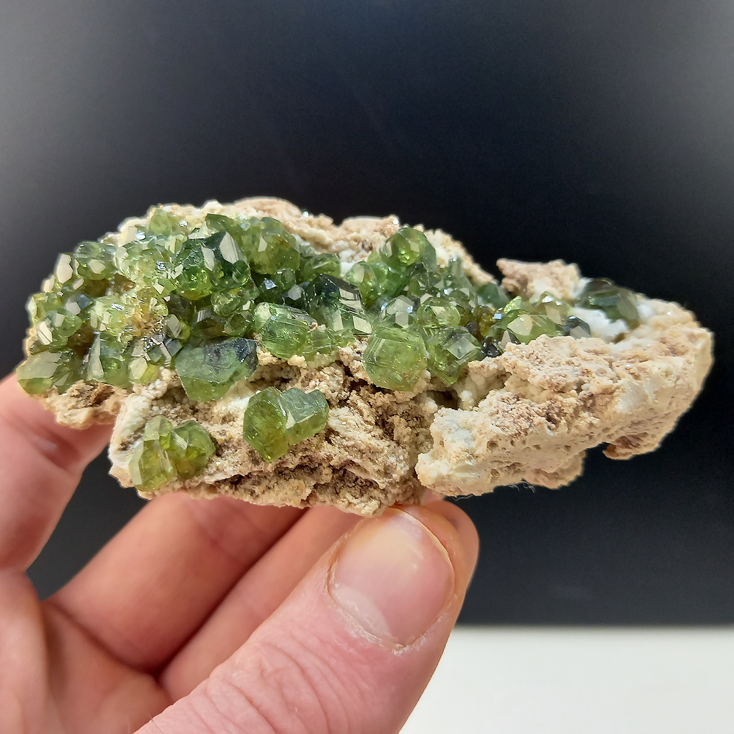 One of the most sought after minerals by every collectors, classic green Demantoid garnet from Antetezambato, Ambanja District, Diana Region, Antsiranana Province – overall size 9,5x6x4 cm. – main Demantoid crystal 1×0,6 cm.