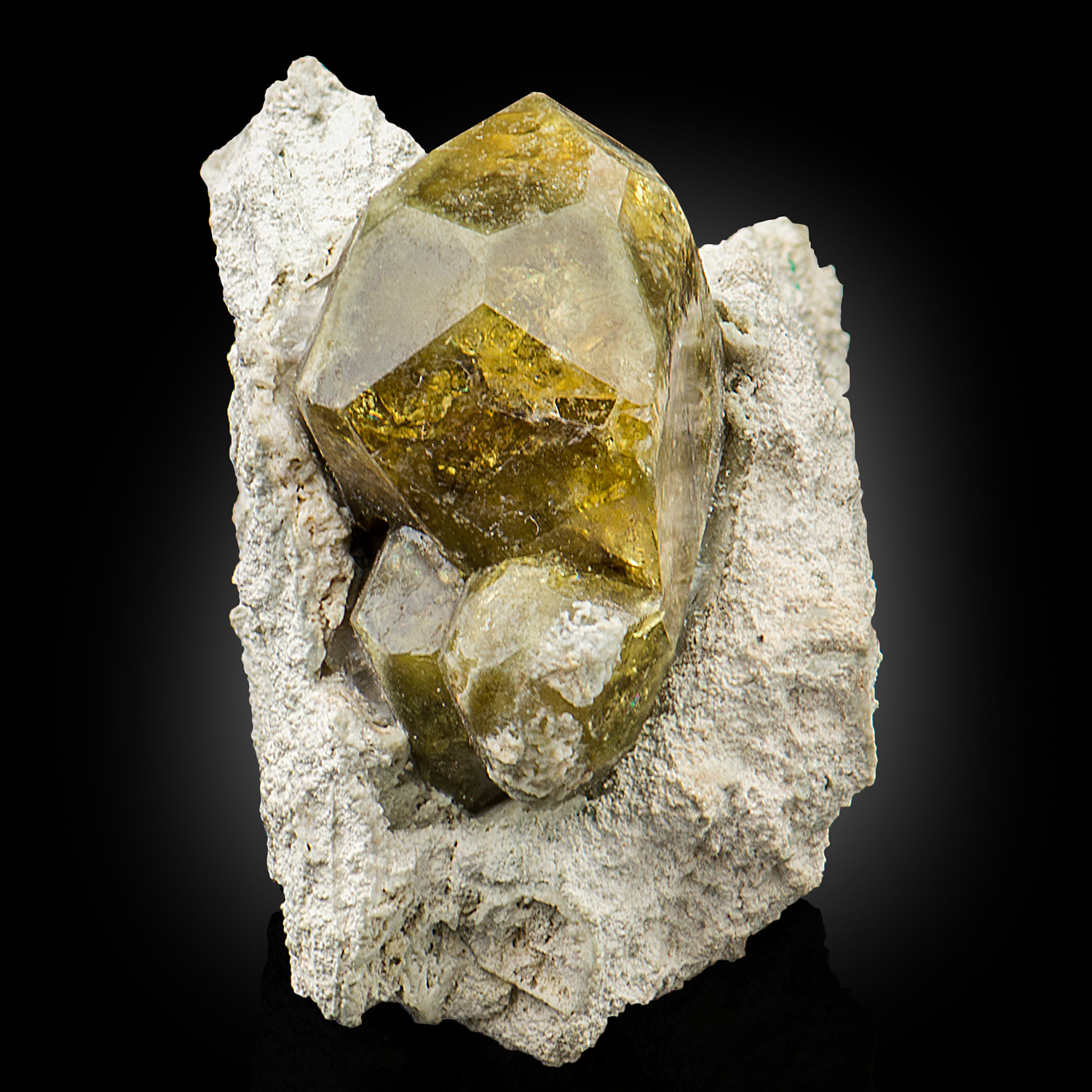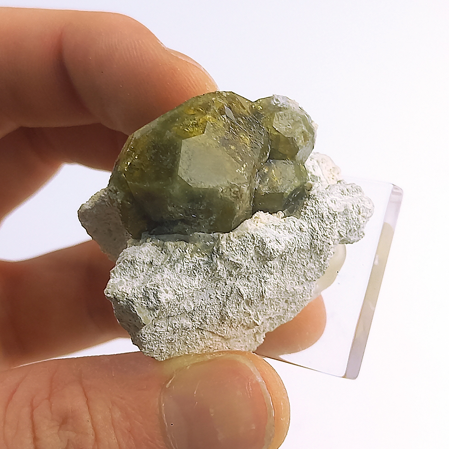 Yellow greenish well formed crystals of Grossular from this old Siberian area, famous for the Wiluite mineral species but also for beautiful olive color garnets; unfortunately this place provides no garnets since many years and crystals on matrix are seldom seen on the market.