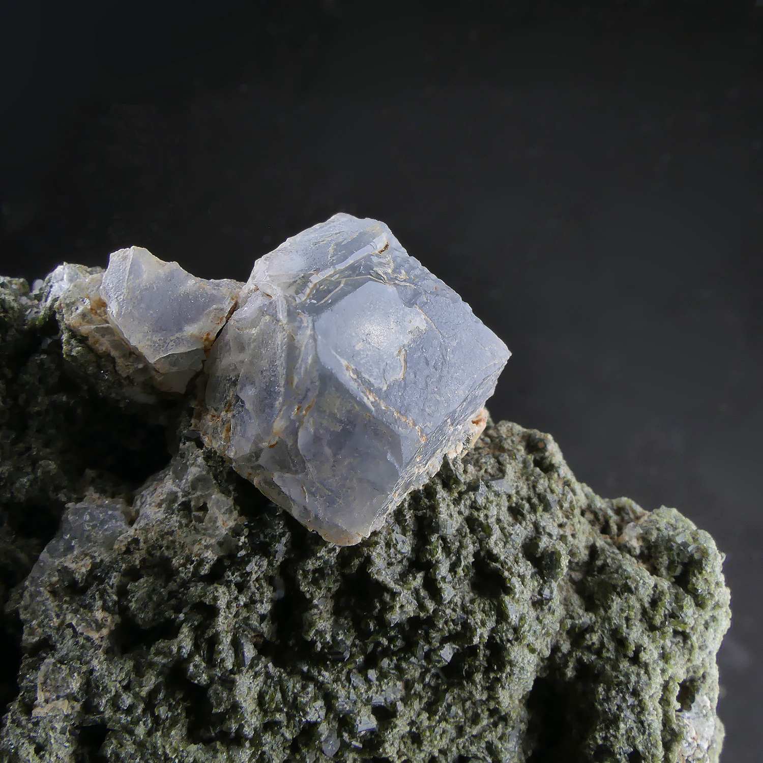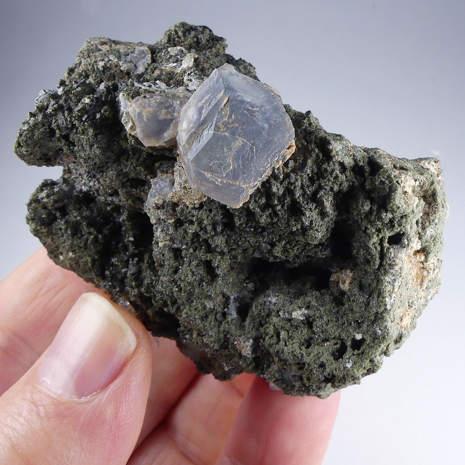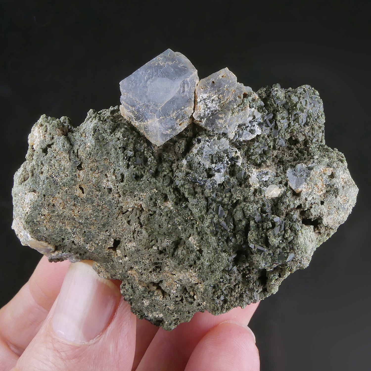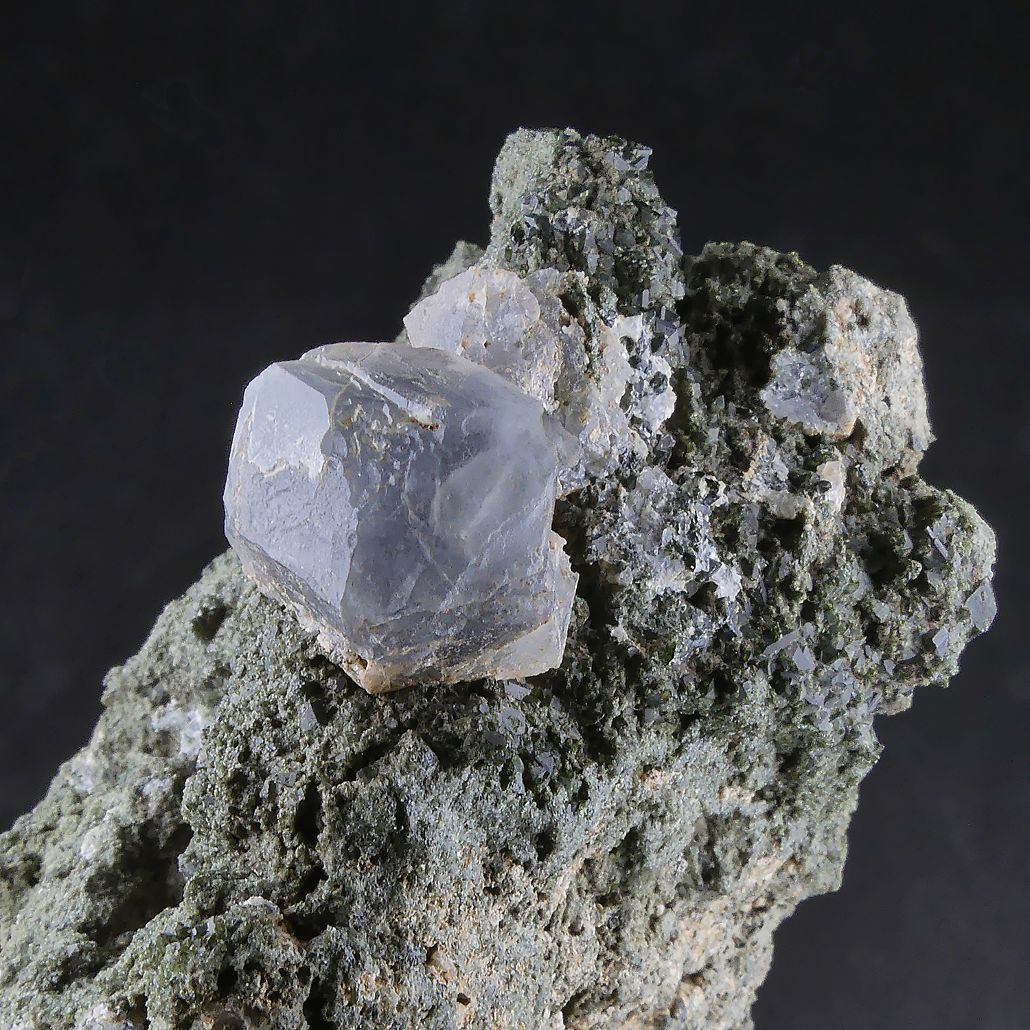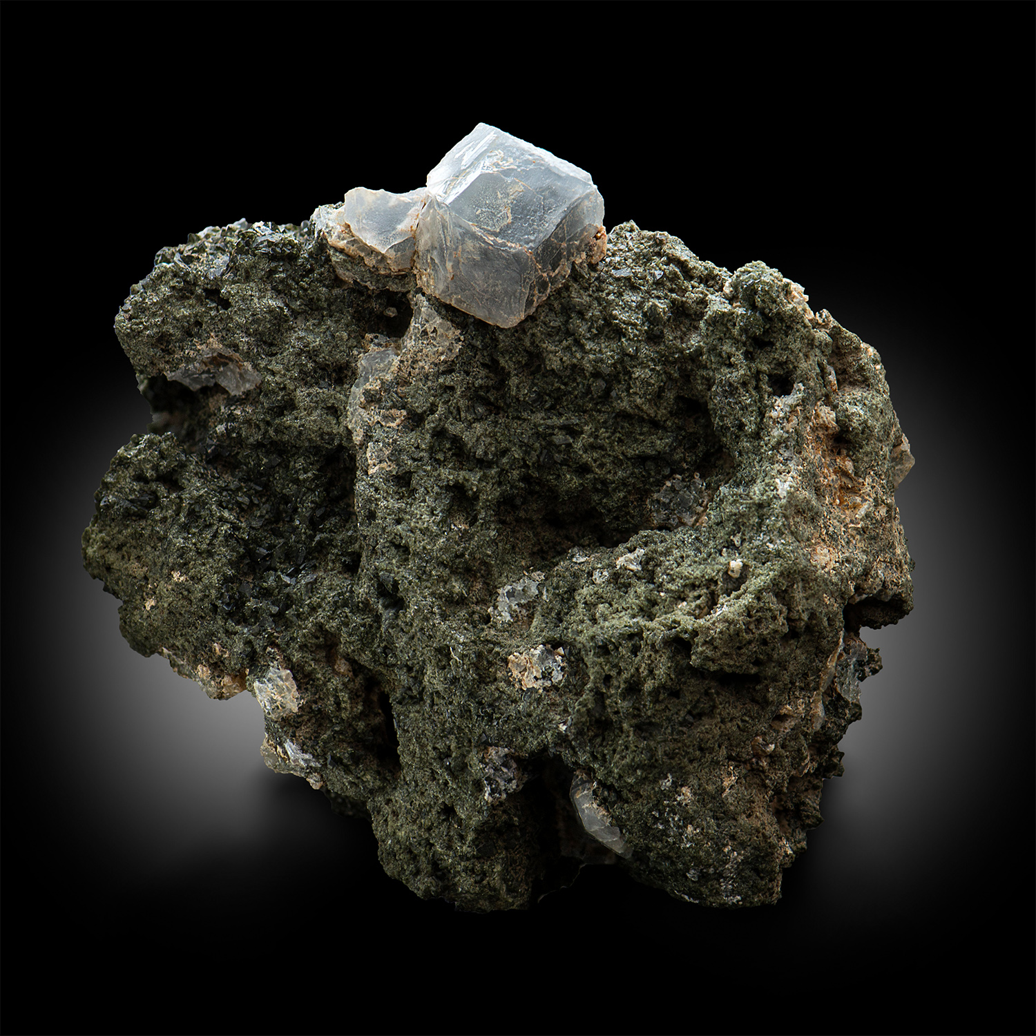 Very rare Haüyne from Biachella Valley, Sacrofano, Metropolitan City of Rome Capital, Lazio, Italy – overall size 6,5×5,6×4 cm – main crystal 1.7×1.4×1.3 cm – ex Piero and Marisa Volpi collection n°423/1977.