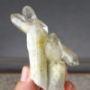 Sculptural quartz cluster dramatically enhanced by fabulous light yellow (perhaps greenish ?) clay inclusions muddy looking; in evidence a prominent and rare double-terminated Quartz crystal, for an amazing final display. Diamantina is known for producing interesting inclusions in quartz crystals. Typically, these are of clay (white to brown muddy looking), chlorite (green), or brookite (brown). Many of the crystals, from here, sustain severe damage during their extraction, so many are polished and some defects, on collector’s specimens, are normally accepted.