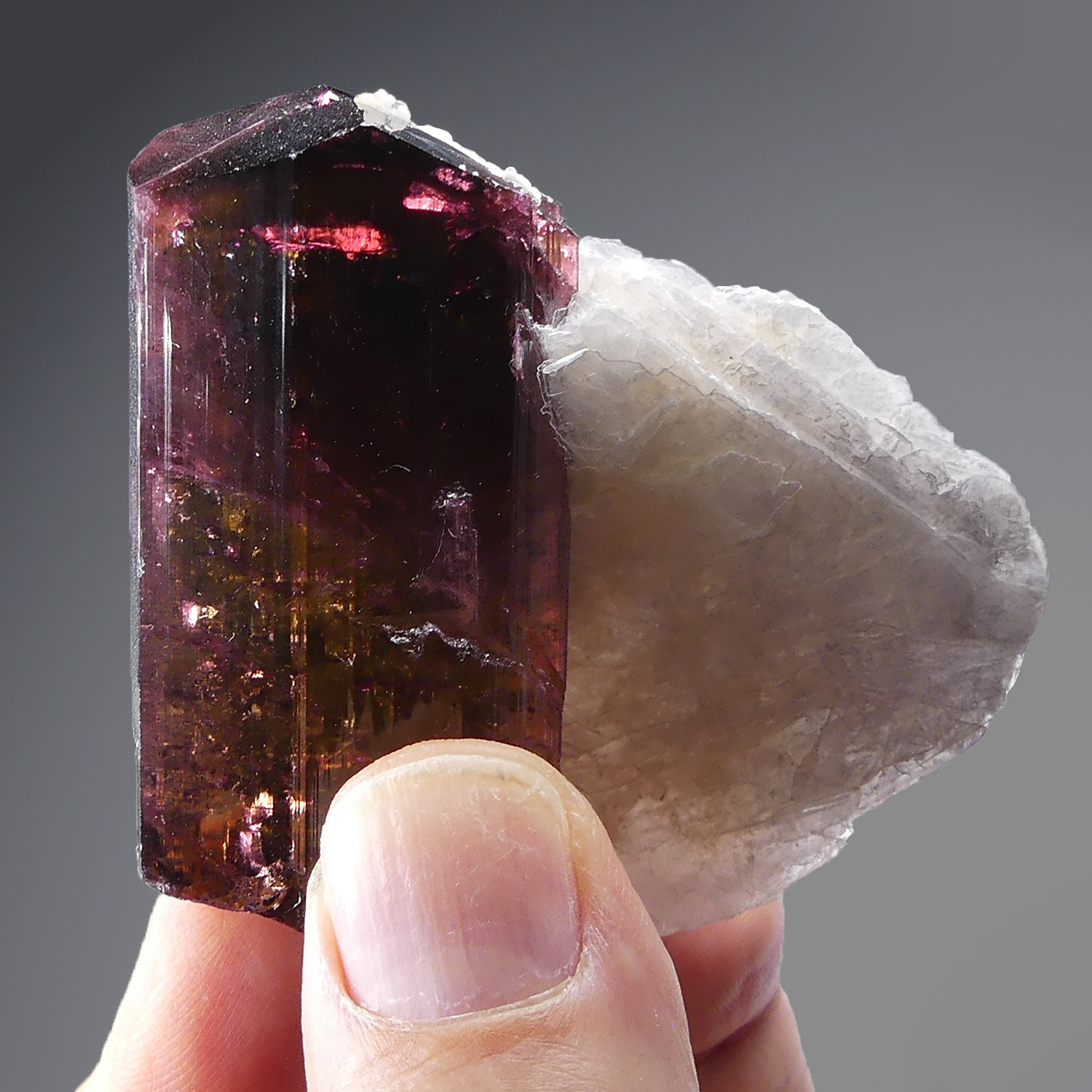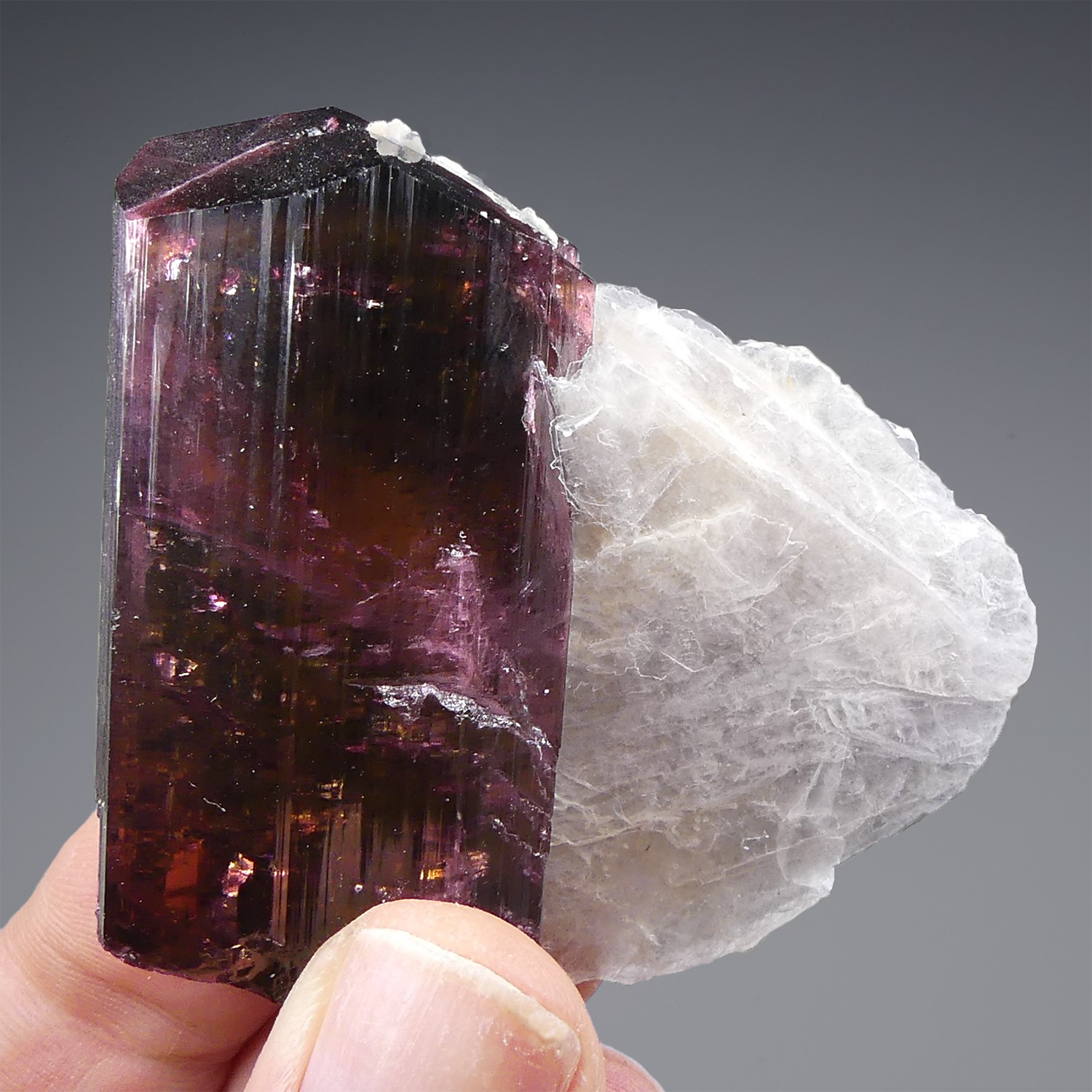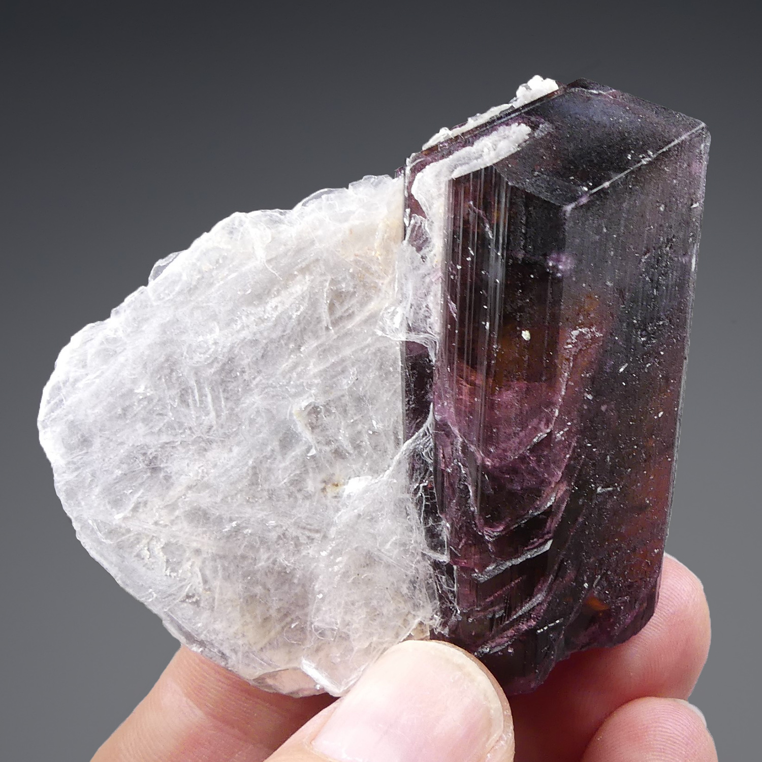 Lustrous Liddicoatite Tourmaline from Befisiotra Mine, Tsitondroina, Ikalamavony, Haute Matsiatra, Madagascar. Rarely they are on matrix. This specimen show a perfect combo with Lepidolite who bring contrast and complete the aesthetic of the piece. No damage, no restoration – overall size 6.7x6x2.5 cm.